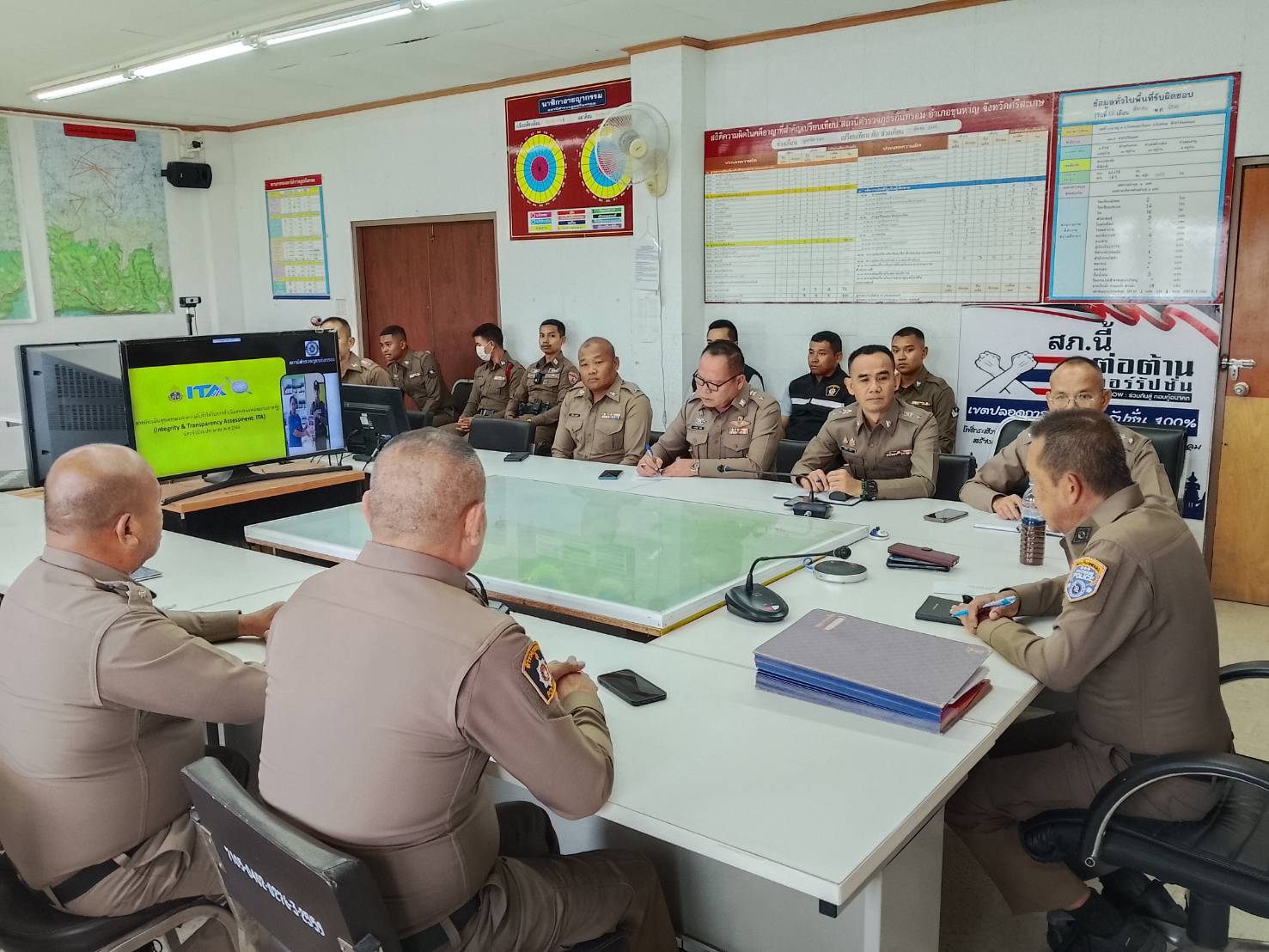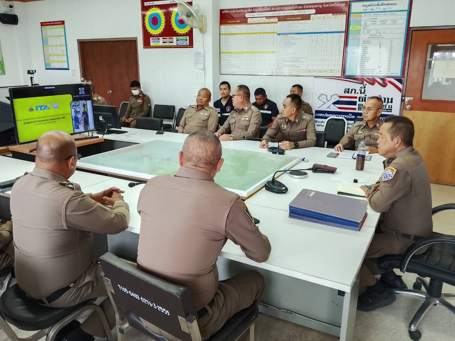 วันที่ 22 เมษายน 2569 เวลา 10.30 น. สถานีตำรวจภูธรกันทรอม โดย พ.ต.อ.อภิชาติ จินาเพ็ญ ผกก.สภ.กันทรอม ได้ประชุมชี้แจงการประเมินคุณธรรมและความโปร่งใสในการดำเนินงานของหน่วยงานภาครัฐ(Integrity & Transparency Assessment: ITA) ประจำปีงบประมาณ พ.ศ.2569 ให้กับข้าราชการตำรวจสถานีตำรวจภูธรกันทรอม ประกอบด้วยประเด็นสำคัญ 3 ประเด็น ได้แก่